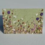 A beautiful greeting card that captures a dreamy view of the British coastline in spring. One of my favourite places to visit is Cornwall so I am sure that inviting sea was inspired by the UK’s southern coast. The dancing wildflower meadow in the foreground adds to the feeling that you are enjoying a coastal walk, transfixed by the sea and natures beauty.