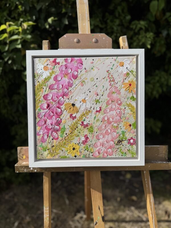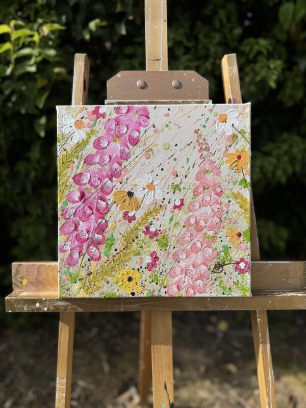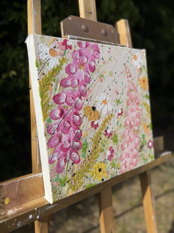 This mini foxglove original painting ‘Foxglove Fields’ brings a touch of nature’s elegance into your home or workspace. Handcrafted with precision and care, this delightful piece captures the delicate beauty of foxglove flowers in a compact size, perfect for adding a splash of colour to any nook.