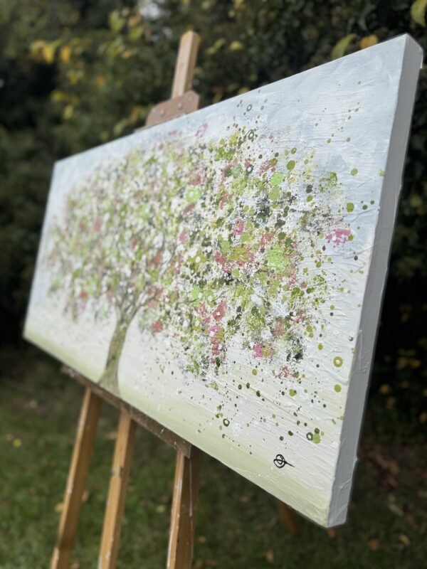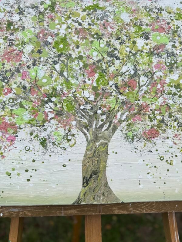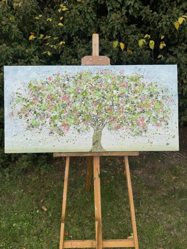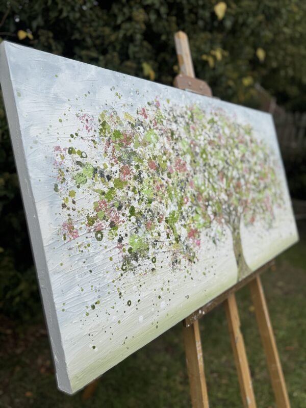 The artist has blended rich shades of green with delicate brushstrokes, making it a striking visual representation of nature’s harmony. Full of texture and movement, this piece is a timeless addition to any way.
